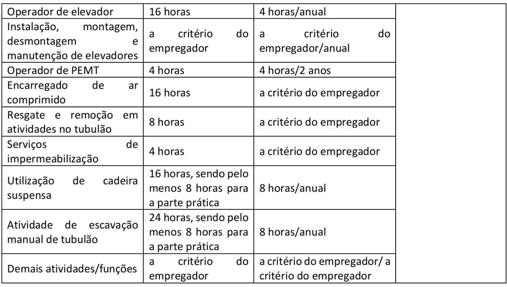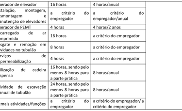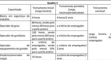 1.1 A carga horária e a periodicidade das capacitações dos trabalhadores da indústria da construção devem seguir o disposto no Quadro 1 deste Anexo.