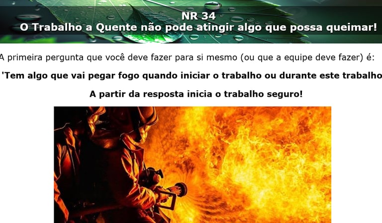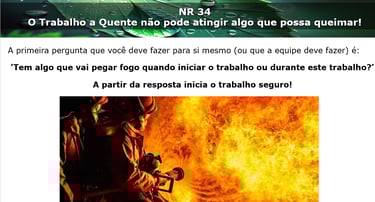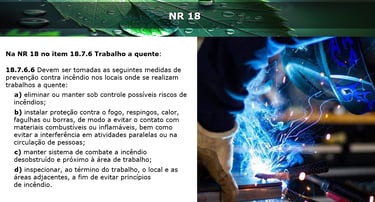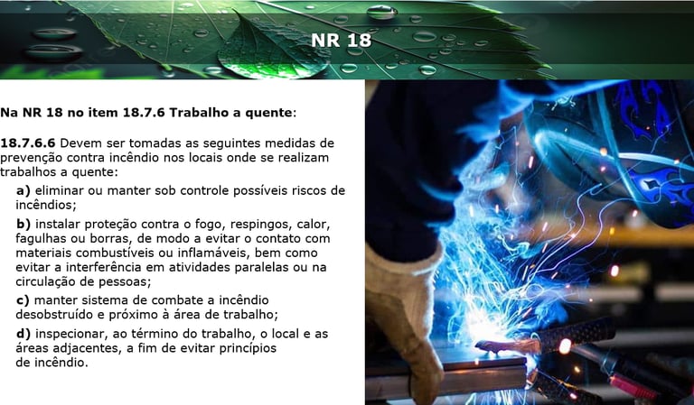 Na NR 18 no item 18.7.6 Trabalho a quente: